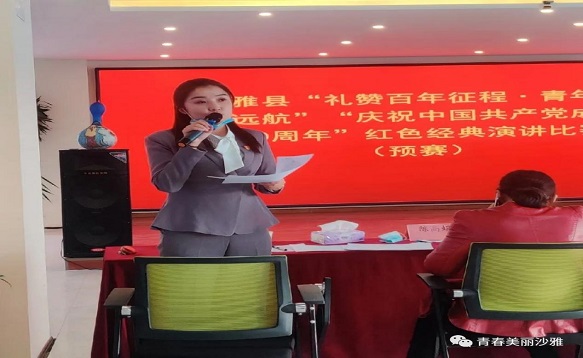 清风网讯(通讯员::迪丽奴尔•库尔班江)为庆祝中国共产党百年华诞,重温党的光辉历程,歌颂党的伟大成就,扎实开展好党史学习教育,激发全县各族党员干部奋进新时代的昂扬斗志,根据县党史学习教育领导小组安排,今日、沙雅县团委牵头举办“礼赞百年征程•青年筑梦远航”“庆祝中国共产党成立100周年”红色经典演讲比赛预赛。