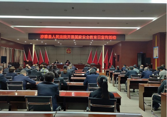 沙雅县人民法院为进一步提高全院干警国家安全法治意识,增强依法维护国家安全理念,4月13日下午,以“践行总体国家安全观,统筹发展和安全,统筹传统安全和非传统安全,营造庆祝建党100周年良好氛围”为主题,将国家安全融入到此次政法队伍教育整顿活动中来,强化全院干警保护国家安全的意识,开展集中宣传。
