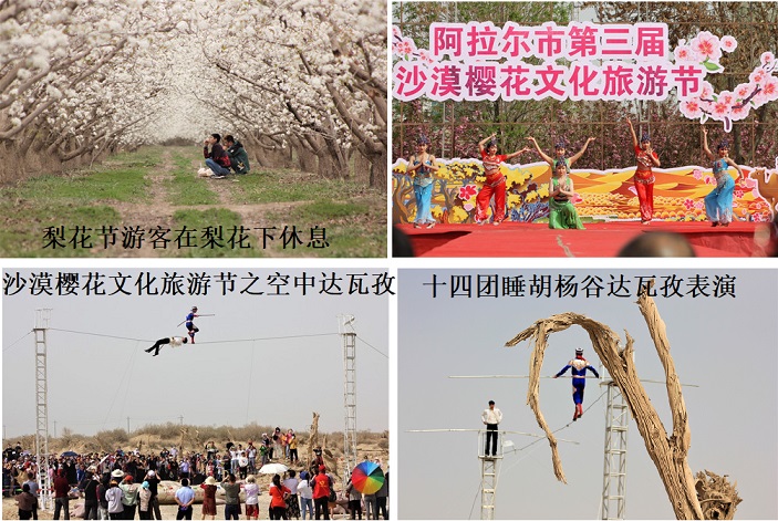 “阿拉尔市第三届沙漠樱花文化旅游节活动内容特别多,不仅在沙漠腹地欣赏到绚丽多姿的樱花,还看到了高空王子小阿迪力的倾情表演,真是不虚此行。”来自广东的自驾游游客赵德福感慨地说。