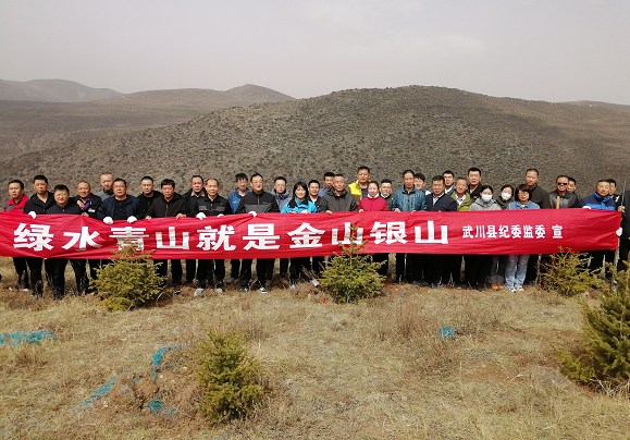 清风网讯 (武川县纪委监委: 苏雅洁)万物勃发春光好,植树添绿正当时。 4月26日上午,武川县纪委监委全体干部集体乘车,来到位于大青山乡四合义村植树点参加义务植树活动,以实际行动践行绿色发展理念,为武川的自然生态添绿增彩。