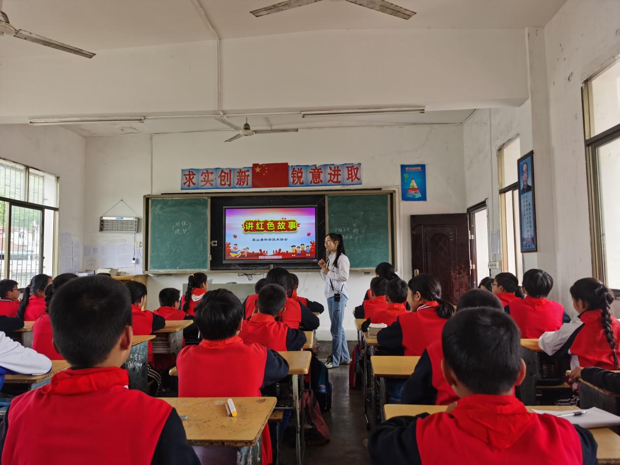 清风网讯(通讯员:方雪涵 赵可)4月28日下午,英山县科协周思源主席带队,在温泉镇中心学校詹宇意校长的陪同下到百丈河小学,为该校老师和五、六年级学生讲党课。党课围绕讲党史、讲红色故事、唱红歌等形式开展,主讲闵老师带领全体学生回顾了党光荣的艰辛岁月,让广大学生感悟今天生活的幸福,鞭策学生努力学习,增强学生的爱国热情和振兴祖国的责任感和使命感。