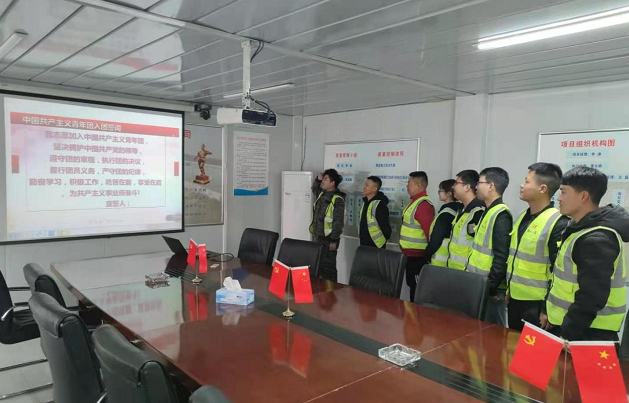 全体团青握拳高举,庄严宣誓:“我志愿加入中国共产主义青年团,坚决拥护中国共产党的领导,吃苦在前,享受在后……”。熟悉的誓词再一次响起,铿锵的誓词,坚定的承诺,在项目部上空回响,在机关会场中回荡,让每一位团青的心灵再次受到震撼和洗礼,熟悉又庄严的誓词也提醒着每一位团青身上肩负的使命。