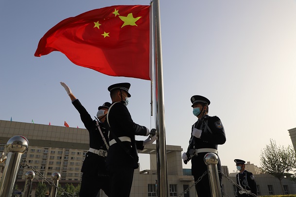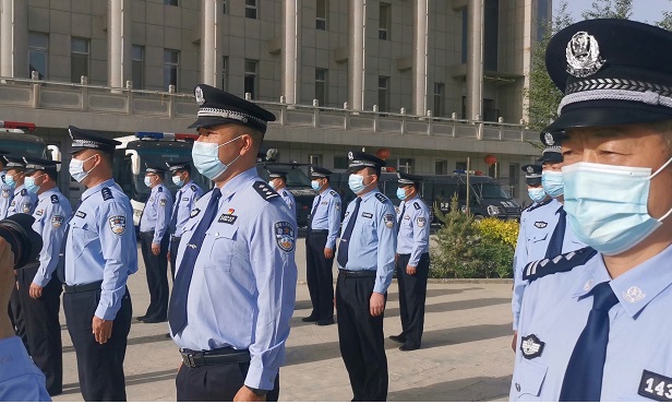 沙雅县公安局举行庆五一升国旗仪式
