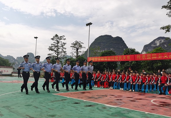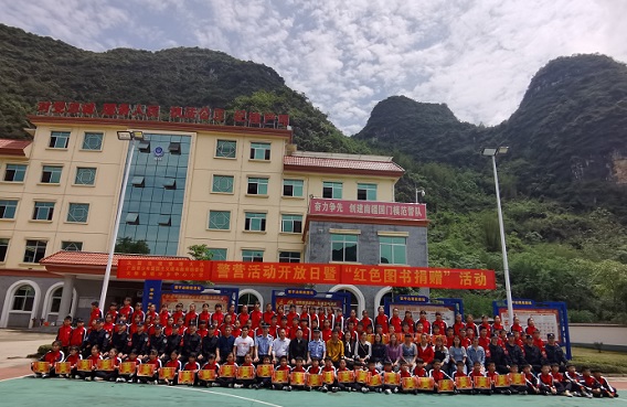 少年强则国强,国防强则民族安。当天上午, 大新边境管理大队携手广西青少年爱国主义读书教育组委会、大新县堪圩乡中心小学等单位齐聚大新雷平边境检查站,共同开展警营开放日暨“红色图书捐赠”活动。