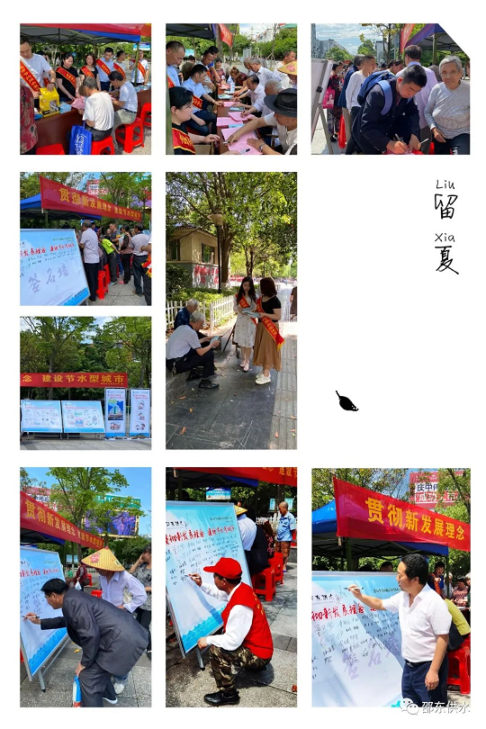 邵东水资源历来匮乏,目前日供水能力虽已达9.5万立方米(含从邵阳市购水),但仍无法满足城市发展的需求。希望广大用户增强节约用水、合理用水、高效用水的自觉性,珍惜每一滴水,从每个小家庭做起,从身边的小事情做起,比如随手关水、勤盛少用、适量用水、短时淋浴等等,在全社会形成一个水资源可持续利用的良好环境。宣传交流中我们也得知部分用户已形成节约用水的好习惯,他们用淘米水来洗碗、浇花,用洗衣服的水来拖地、冲厕所。有些老人还请求多带几本宣传手册回家给晚辈们看,让全家都参与到节水行动中来。活动现场大家踊跃在签名墙上进行签名,纷纷表示愿意争当节约用水的先锋,并呼吁更多单位、更多家庭、更多人关注水资源保护。