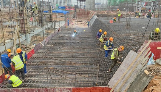 清风网讯(特约记者 常魁星 通讯员 尹佳新 靳文友)5月13日,在中国十五冶40万吨项目施工现场,旋挖桩基、静压桩基、装载机、挖机、汽车吊、坦克吊、塔吊、运货车辆等各种工程车有序运行。熔炼区域主厂房两台闪速安装如火如荼,主厂房周边子项冰铜磨、冰铜磨收尘、熔炼余热锅炉、烟气净化、熔炼吹炼收尘,熔炼循环水等子项土建和安装交相辉映;硫酸区域尾气烟囱外筒施工日夜不停,转化工段转化器已步入安装阶段,净化工段专业分包单位已全面进驻;电解车间G-H轴1-26线电解槽支架模板施工,E-H轴四周墙体砌筑,H-R轴附跨地坑基础施工,附跨预制柱施工,主车间行车轨道调整,屋顶桁架及屋面大板吊装等全面铺开;到图子项具备开工条件的能开尽开,达到土建全面铺开,安装同步跟上的施工组织条件,整个施工现场在热火朝天、井然有序、紧张忙碌着。