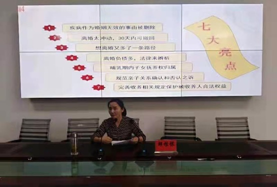 大讲堂上,湖北超强律师事务所党支部书记邹桂银律师就《民法典》中的七大亮点条款进行了重点解读,结合妇女儿童权益保护,用通俗易懂的语言为大家讲解了《民法典》婚姻家庭篇中与妇女群众息息相关的内容,针对“哺乳期内子女抚养权归属”、“夫妻共同债务”等重点内容,结合真实的案例进行了生动的讲述。通过宣讲,使妇联干部对《民法典》婚姻家庭编印象更加深刻,进一步提高了依法维护妇女儿童合法权益的业务能力,为下一步更好地开展妇女儿童维权工作提供了法律指引。