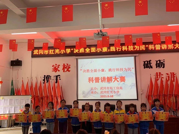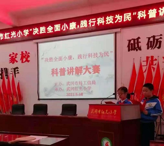 清风网讯(通讯员:林芬 唐冬云 李石桥)为促进精神文明和科技普及的融合发展,全面提升科学素质,促进科技创新和科学普及协调发展,使科技创新成果和科学普及活动真正惠及广大公众,5月18日下午,由湖南武冈市科工信局主办,武冈市红光小学承办的“决胜全面小康,践行科技为民”科普讲解大赛活动在红光小学阶梯教室举行,给 广大师生带来了一场丰富多彩的科普盛宴,受到了师生的热烈欢迎。