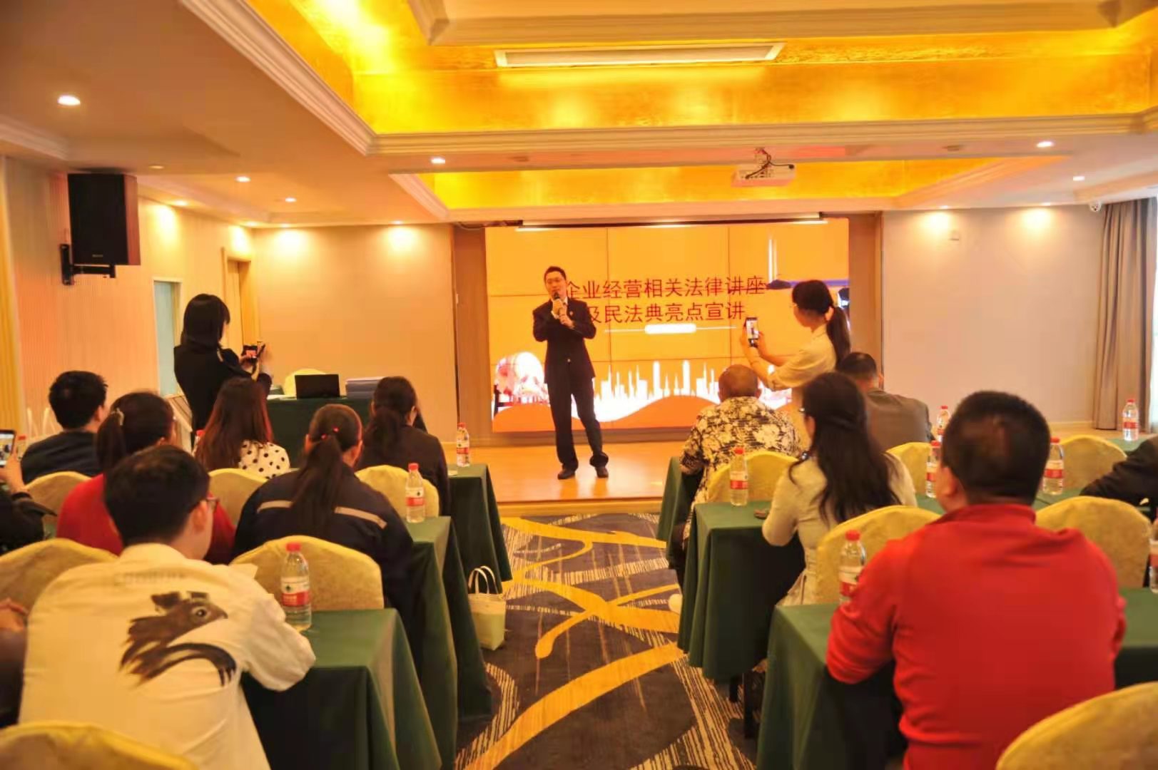 活动中,刘磊结合自身司法工作经验、具体案例、时下热点问题,解读了《民法典》新增和修改的亮点内容。同时,针对参会人员的身份特点,详细讲解了合同编的新变化和新规则,通过合同纠纷诉讼案例,深入浅出地分析合同订立、合同履行、合同的保全、变更及转让等风险防范及应对措施,并对企业公司涉及较多的建设工程合同进行了重点讲解。