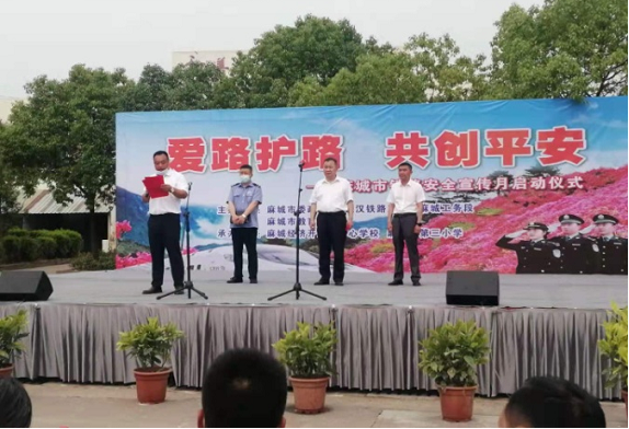 启动仪式上,首先市委政法委常务副书记郑勃就“铁路安全的重要性、如何做到铁路安全运行和如何保障自身人身安全”作了重要精辟的讲话;接着武汉铁路局集团麻城工务段吴段长就《铁路运输安全保护条例》作了细致讲解;麻城市第三小学学生代表作了“爱路护路从我们做起”的演讲发言;市教育局党组副书记邹仁平从“学校和学生应注意和预防的铁路安全”有关事项作了具体要求;最后,市委政法委副书记付昕就本次活动作了总结发言,提了有关工作要求。