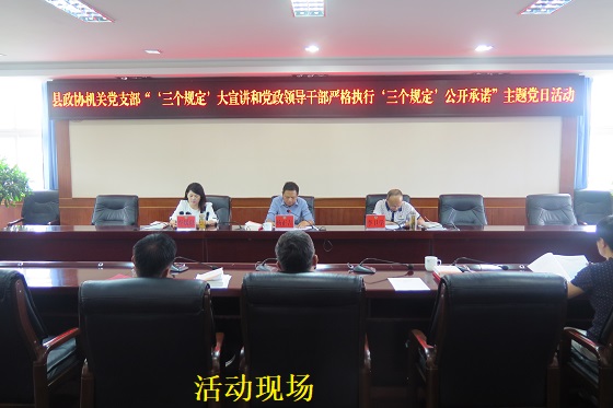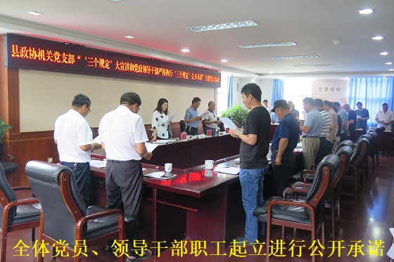 清风网讯(政协凤庆县委员会办公室:李融)近日,凤庆县政协以机关党支部主题党日活动形式,积极开展“三个规定”大宣讲和党政领导干部严格执行“三个规定”公开承诺。