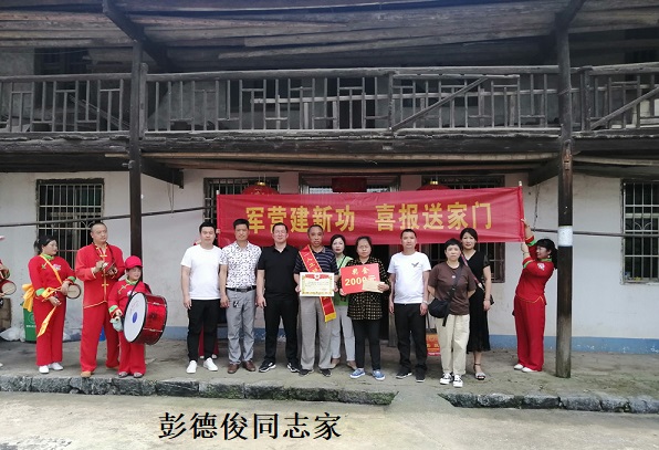 慰问组一行打着耀目的横幅,给军属们送来了喜报、慰问金及慰问品,家乡的父老乡亲们也是闻之而动,载歌载舞,敲锣打鼓前来祝贺。慰问组详细询问了军属们的生活情况,感谢他们为部队、为国家培养了优秀的军事人才,并为他们送上党和政府的亲切关怀。彭德俊的父亲彭坤民和陈家的父亲陈继兵连连感谢部队对孩子的培养和厚爱,表示会鼓励孩子在保家卫国的神圣岗位上再接再厉,锐意进取,建功军营,再创佳绩。