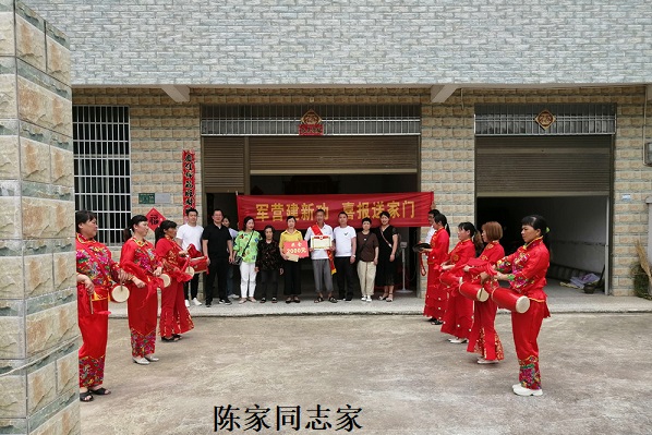 清风网讯(新邵县迎光乡人民政府:李伟强 江涛 庞永坤)优秀青年立志从军,热血男儿精诚报国。6月9日,迎光乡现役军人彭德俊同志和陈家同志的家中热闹非凡、喜气盈门,由新邵县人武部、退役军人事务局和迎光乡党委、政府组成的慰问组,分别来到车塘村和顺水村,向这两个“光荣之家”送去了崇高的敬意和祝福。