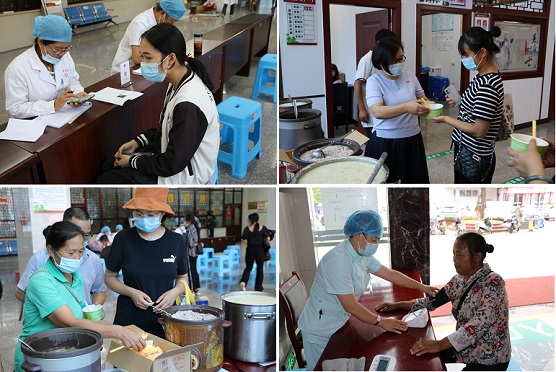 治未病科为前来参加义诊活动的群众准备了免费的中草药凉茶和健康营养粥。中国人喝粥的历史由来已久了,我国古代,每年到举行重大的祭祀活动,将各种干物谷子豆类放在一起煮熟成粥,敬奉神明,祈求明年的风调雨顺,能够获得丰收。义诊现场,芳香四溢,引得广大群众纷纷驻足,前来参加活动的刘大爷说:“像这样燥热的天气,喝上这一碗陈皮绿豆沙粥,感觉十分清凉解暑,谢谢县中医医院给我们带来这些实惠。”