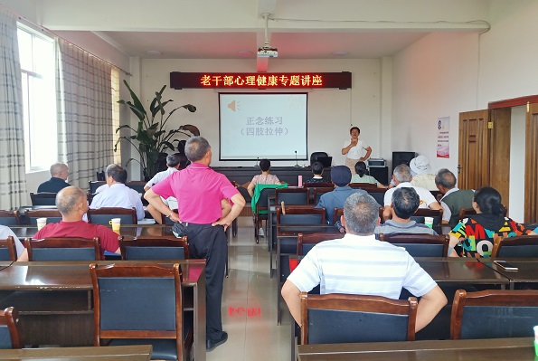 讲座中,段秀云老师结合实际,围绕何为健康、心理特点及变化、心理发展的主要矛盾、常见的心理危机、保健措施等方面,深入浅出地进行了阐述。并亲身示范“四肢拉伸”动作要领,使老干部们对如何让肌肉舒展、防止僵硬有了一定的了解,掌握了一些简单的运动方法,使在场的老同志感到受益匪浅。同时就如何合理膳食、培养幽默感、适量运动、心理平衡等提出了建议,引导老干部们在生活中要保持良好的精神状态,乐观积极的生活态度,注重保养保健,养成良好的运动方式和健康的生活方式,倡导健康生活的理念,形成科学文明的生活习惯,顺利度过一个健康快乐的晚年。
