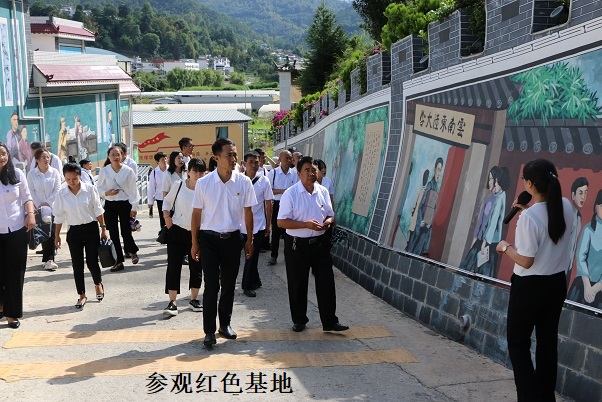全体干部职工统一乘车前往以凤庆县第一位共产党员肖朝汉烈士的英勇事迹为载体而建立的红色教育基地,依次观摩了灵修桥、红色文化广场、肖朝汉纪念馆、勐佑村村史室馆、党建文化长廊,并在党旗下重温了入党誓词。