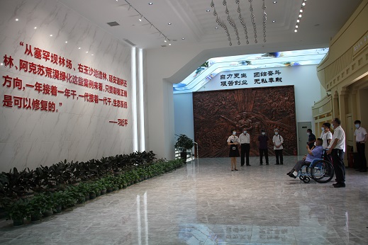 “我志愿加入中国共产党,拥护党的纲领,遵守党的章程,履行党员义务……”在柯柯牙纪念馆内,各位道德模范开展了重温入党誓词宣誓活动,并在讲解员的带领下,逐一对展馆进行了参观,对柯柯牙原始地貌有了一个清晰的认识,也激起了他们对“柯柯牙精神”的深刻理解。“那时候每到3月份开春,就是黄沙漫天,干农活的时候连路都看不清,现在气候越来越好,降雨也比较多,真的不一样了!”参观完柯柯牙纪念馆的库尔班·胡达拜地由衷的说道。