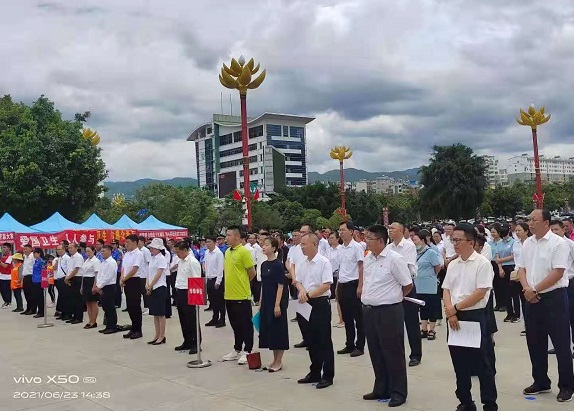清风网讯(临翔区创卫办:辉晨曦)6月23日,临沧市创建国家卫生城市动员推进会议暨“创卫”主题宣传活动在沧江园广场举行,市区两级多家单位、企业的干部职工、环卫工人、市民等共200余人参加。