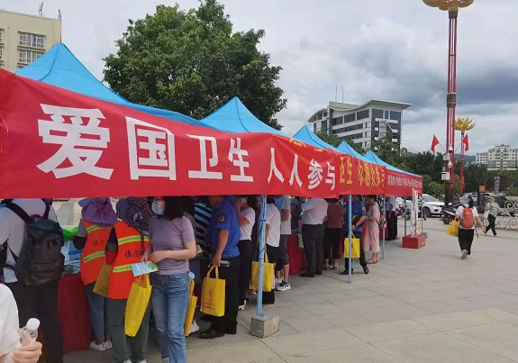 在“创卫”主题宣传活动现场,通过设点布展宣传、发放宣传资料、爱国卫生有奖知识竞答、体质监测服务、义诊等活动形式,提高广大市民的爱国卫生意识。