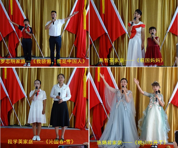 “你是涅磐的烈火中飞出的金凤凰,你是神州大地上舞动的巨龙,你是东方的醒狮啊,你,就是我们刚刚走过无数风风雨雨的伟大的中华人民共和国!”“我骄傲,我是中国人!”“我骄傲,我是中国人!”一个个可爱的孩子,在爸爸妈妈的感召下,用一声声稚嫩的童音,和爸爸妈妈一起,表达两代人对党和祖国赤诚的热爱。