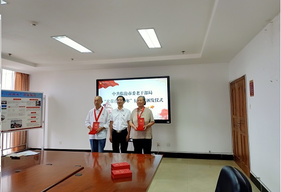 举行“光荣在党50年”纪念章颁发仪式。会上,市委组织部副部长、市委老干部局局长李开荣同志为党龄达50周年、一贯表现良好的2名老党员颁发了“光荣在党50年”纪念章,向他们表示热烈祝贺和崇高敬意,号召年轻党员积极主动向老党员学习、向老党员看齐,学习他们信守誓言、赤胆忠诚的政治品格,始终忠诚于党的事业;学习他们不忘初心、鞠躬尽瘁的为民情怀,扎实开展“我为群众办实事”实践活动;学习他们牢记使命、砥砺奋进的光荣传统,以实际行动做好离退休干部各项工作,不断续写党和人民事业的新篇章。