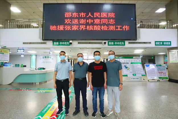 清风网讯(通讯员:王瑛 申秀梅 谢磊 赵灿群)“我是共产党员,哪里有需要就去哪里。感谢医院党委给我去支援张家界的机会。妻子特别支持我,嘱咐我放心前去,家里的事她都能扛得住。我一定在做好自身防护的情况下,圆满完成组织交给我的工作任务。”邵东市人民医院检验科主管检验师谢中意出征前开心地说。根据疫情防控需要和上级通知精神,7月31日,邵东市人民医院谢中意、市中医医院朱巧峰、市疾病预防控制中心海政和孙娅莉四名英勇的医务人员闻令而动,主动请缨,踏上驰援张家界的征程。