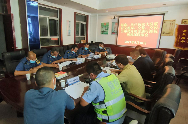 清风网讯(乌什执法大队:阿依吐尔逊·牙)8月10日下午,乌什、温宿执法大队与阿克苏公路管理局、阿克苏分局及公安交警大队行政执法领域联席会在乌什执法大队会议室召开。此次会议乌什执法大队副大队长周新华同志主持会议并宣读三方联动协议。