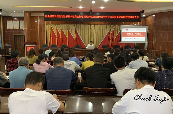 清风网讯(凤庆县凤山镇:刘一波、杨永胜) 近日,按照部署要求,凤庆县凤山镇邀请县委党校常务副校长杨绍宇在镇报告厅作学习贯彻习近平总书记在庆祝中国共产党成立100周年大会上的重要讲话精神专题宣讲报告,报告题目为“以史为鉴,开创未来”。报告会由镇党委委员、宣传委员刘一波主持,镇机关全体干部职工,共90余人参加报告会。