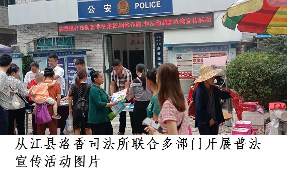 清风网讯(从江县司法局:杨进南)为进一步推进“八五”普法工作,提高群众的法律素养,日前,从江县洛香司法所积极履行司法行政职能,联合洛香镇综治办、派出所、人武部、信访办等部门利用当地赶集日到市场开展普法宣传活动。