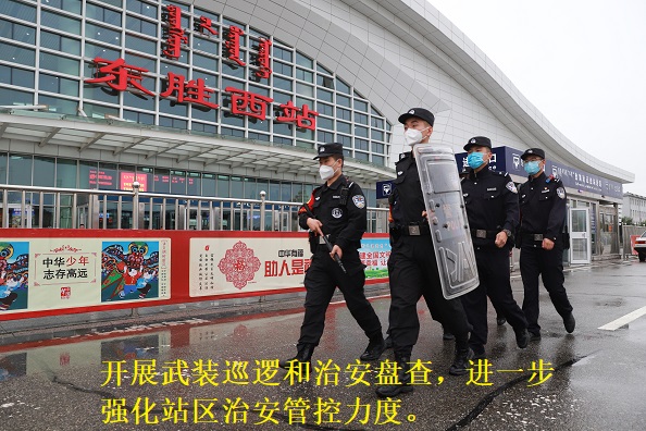 为确保第十四届全运会顺利举行,包头铁路警方合理铺排警力,全面提升安保等级,在东胜西火车站和鄂尔多斯火车站设立环陕检查站,严格落实24小时运行制度,针对进站口、候车室、售票厅等重点部位,组织民警开展巡逻盘查和秩序维护,进一步强化车站治安管控。