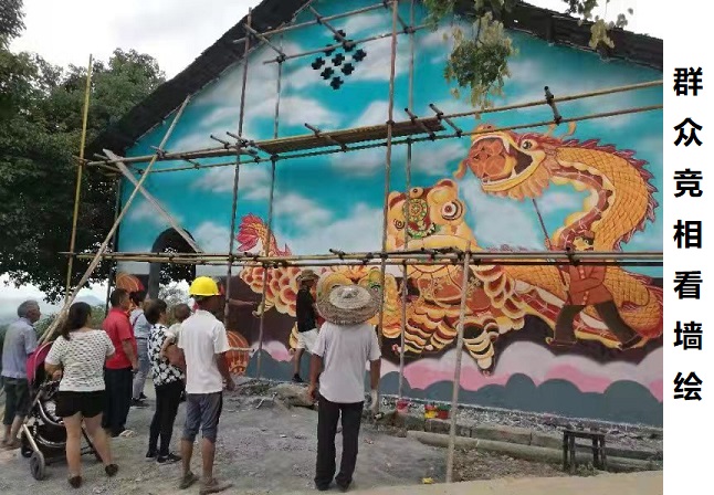 清风网讯(通讯员:胡南春)为加快乡村振兴战略实施步伐,9月19日至21日这个中秋佳节小长假,武冈市文联精心组织了12名知名画家前往稠树塘镇甘田村采风,大家尚未落座就忙开了,找旧墙的,搬设备的,挥笔墨的。。。。。。他们既分工又合作,那绵延不断的青山,那绿水清波的倒影,那迎风招展的树枝,每每晃一晃,一幅立体的水墨画忽然悬挂于眼前,“文艺动起笔,乡村更美丽!”,农民朋友们由衷感慨着。