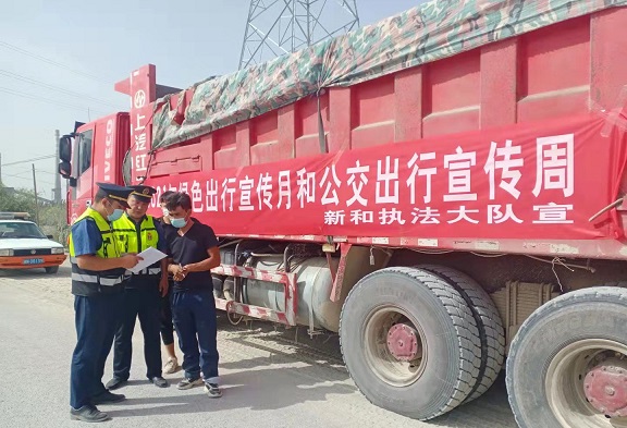新和执法大队在9月20日-26日期间开展了绿色出行宣传月和公交出行宣传周系列活动。此活动期间我大队组织3名执法人员到行业人员较密集地方发放宣传单总45分,为群众讲解了绿色出行意义。