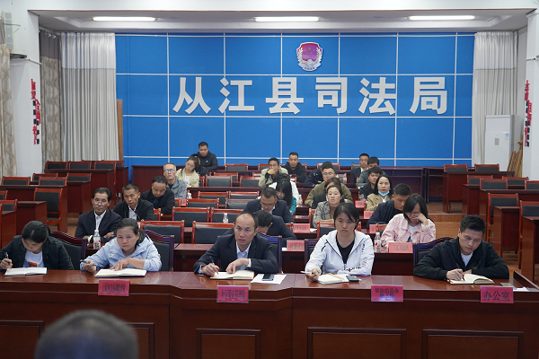 10月13日下午,从江县司法局召开群众安全感满意度双提升工作推进会。会议由党组书记、局长严铭同志主持,全体干部参加。