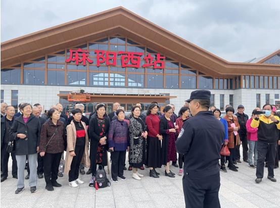 为了配合麻阳县进入高铁时代后的新变化,麻阳站派出所的民警们还顺带向这些参观的老教师们讲解了高速铁路的安全注意事项。老教师们表示,乐意当好高铁安全宣传的“志愿者”。