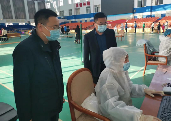 在县疾控中心,沈晓东检查了防疫物资储备情况,认真听取了疫情防控工作整体汇报,详细了解了抵(返)和林县人员流量、核酸检测能力、疫苗接种数量、隔离点设置、数据监测上报等方面具体情况。