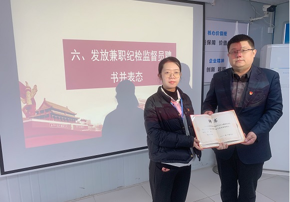 6.杨黎明为兼职纪检监督员颁发聘书