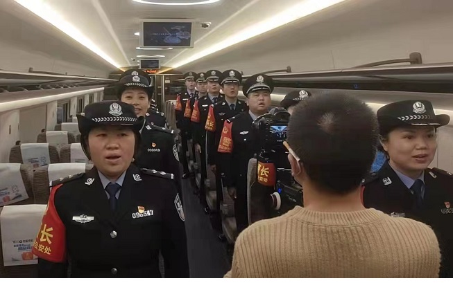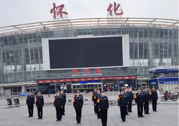在这次红歌云合唱活动中,为了充分体现铁路公安乘警队伍值乘列车的特色,该支队在会议室合唱结束后,又走进“复兴号”列车的车厢内展开合唱活动,然后又移师怀化车站广场继续展开合唱活动。