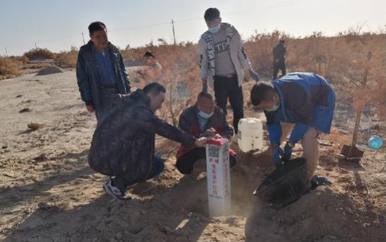 会后,自治区自然资源规划研究院副院长候锐兵带领一行人驱车前往新和县生态保护红线区,经过一路颠簸,来到了界桩预设点,大家齐心协力埋下了新和县生态保护红线第一个界桩,标志着新和县生态保护红线执法监督从此将有据可依。