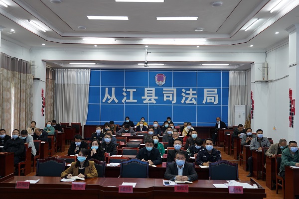 清风网讯(从江县司法局:吴东海)11月15日,从江县2021年度法治建设“两降一升”暨行政执法人员培训会议在县司法局召开,县人民政府副县长、公安局党委书记、局长陈远剑同志出席会议并讲话。会议以视频的方式召开致各乡镇,全县各执法部门单位相关人员共计200余人参加培训,同时邀请县政府法律顾问贵州铁力律师事务所吴寿喜律师、贵州智晓律师事务所陆伟律师和县人民法院张倩法官进行专题辅导授课。