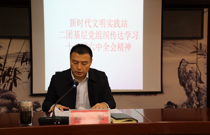 党的十九届六中全会总结了党的十九届五中全会以来党和国家各项事业取得的新的重大成就,对走好新的赶考之路提出了明确要求。全会审议通过的《中共中央关于党的百年奋斗重大成就和历史经验的决议》,是新时代中国共产党人不忘初心、牢记使命的政治宣言,是我们党团结带领人民以史为鉴、开创未来的行动指南。二团党员干部要深入学习领会、深刻把握蕴含的重大意义和精神实质,以史为鉴、砥砺前行,把全会精神转化为指导实践、推动工作的强大动力,在向南发展、建设“兵城红都、西域学府、大漠硅谷”和美丽二团中作出新的更大贡献。
