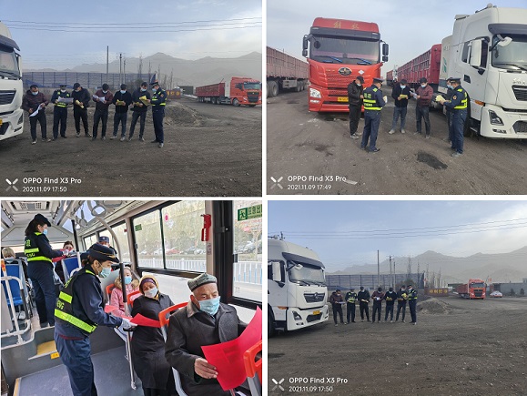 清风网讯(库车执法大队:鲁提甫拉•夏米西、亚森•艾合买提)“诚信走遍天下,失信寸步难行”。11月15日,自治区交通运输综合行政执法局阿克苏执法支队库车执法大队组织开展了形式多样的“信用交通宣传月”主题宣传活动。“希望通过走入乡村、进到企业,广泛宣传、解决问题的“互动式”交流,将本次“信用交通宣传月”活动与“我为群众办实事”实践活动相结合,充分调动各方关注信用交通,参与信用交通建设的积极性创造性。