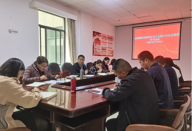 清风网讯(云县商务局:熊志平) 11月18日上午,云县商务局召开专题会,认真学习贯彻党的十九届六中全会精神,云县商务局党组书记主持会议。