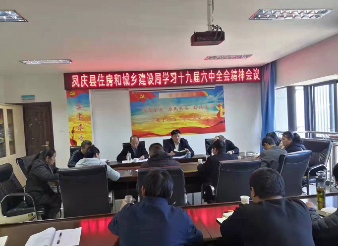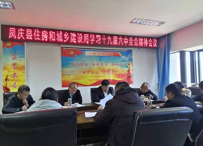 清风网讯(凤庆县住建局:鲁正芹、 杨建雄、 施庆斌)近日,凤庆县住建局按照上级部署要求,召开局党组扩大会议,学习传达党的十九届六中全会精神,会议由县住建局党组书记、局长、县人防办主任杨喜庆主持。