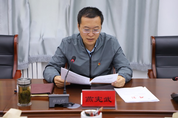 (县委常委、纪委书记、监委代主任燕宪武领学党的十九届六中全会公报图)