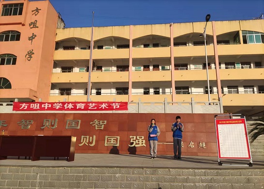 清风网讯(通讯员:王灵烽) 2021年11月25日,方咀中学2021年体育艺术节隆重开幕,全校师生参加了开幕式。校长发表了激情昂扬的讲话,他勉励所有参赛选手,希望他们在赛场上像在学习上一样奋力拼搏,创造佳绩。