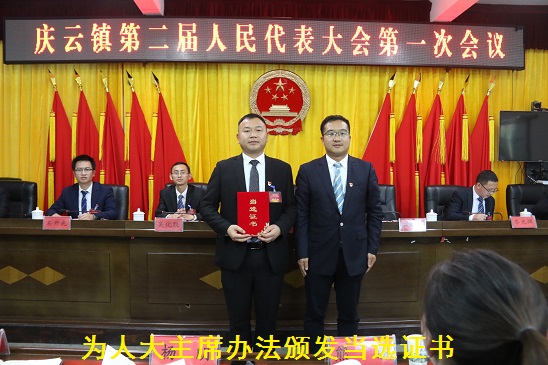 会议听取并审议了《政府工作报告》和《人大工作报告》,书面审查和批准了《财政工作报告》。大会严格按照法定程序和选举办法,以无记名投票的方式,选举产生了庆云镇新一届人大主席1名、镇长1名和副镇长3名。新当选人员向《宪法》庄严宣誓,承诺时刻牢记誓词,恪尽职守,廉洁奉公,接受人民监督,全心全意为人民服务。