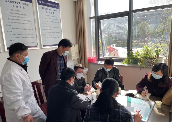 清风网讯(英山县司法局:段云) 为贯彻落实 《司法部关于进一步深化改革强化监管提高司法鉴定质量和公信力的意见》(司发【2020】1号)和司法部公共法律服务管理局 《关于落实司法鉴定行业党建工作任务指导意见》(司公通【2021】)8号精神,进一步加强对司法鉴定执业活动事中事后监管,加快推进司法鉴定行业党建的工作全覆盖,根据2021年度“双随机、一公开”的部署要求,市司法局于11月30日赴英山县人民医院司法鉴定所开展司法鉴定机构“双随机”检查工作。