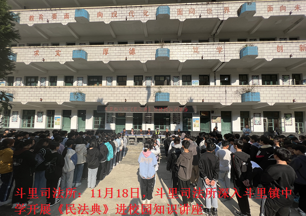 斗里司法所:11月18日,斗里司法所深入斗里镇中学开展《民法典》进校园知识讲座,全校师生共400余人参加。此次活动有助于未成年人提高自我保护能力,进一步推动法治校园建设。