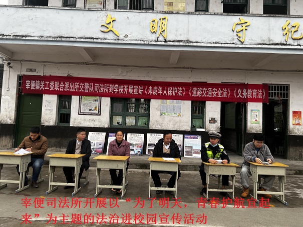 宰便司法所:11月19日,宰便司法所与宰便镇关工委、宰便派出所来到宰便镇中心小学,开展以“为了明天,青春护航宜起来”为主题的法治进校园宣传活动。活动上发放了相关法治宣传材料,以及12348公共法律服务热线名片,使全体师生进一步牢固树立了安全意识、法治意识。