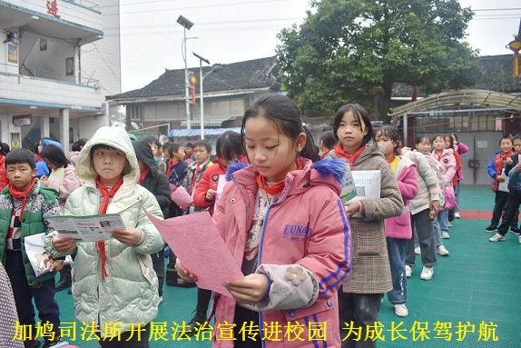 加鸠司法所:11月19日,从江县司法局加鸠司法所联合加鸠机关工委宣讲团、派出所深入加鸠小学开展法律宣传讲座。司法所负责人吴庆向学生宣传《民法典》的有关内容,增强了同学们辨别是非和自我保护的能力,为未成年人的成长保驾护航。